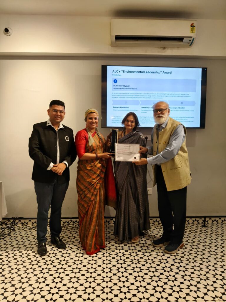 Dr. Roshni Udyavar Yehuda, CEO of RUA Ecospaces, has been honoured with the AJC+ “Leadership in Environmental Architecture” Award (Built Environment) – organized by AJC+ (Architectural Journalism & Criticism Organization), curated by Ar. Pappal Suneja.